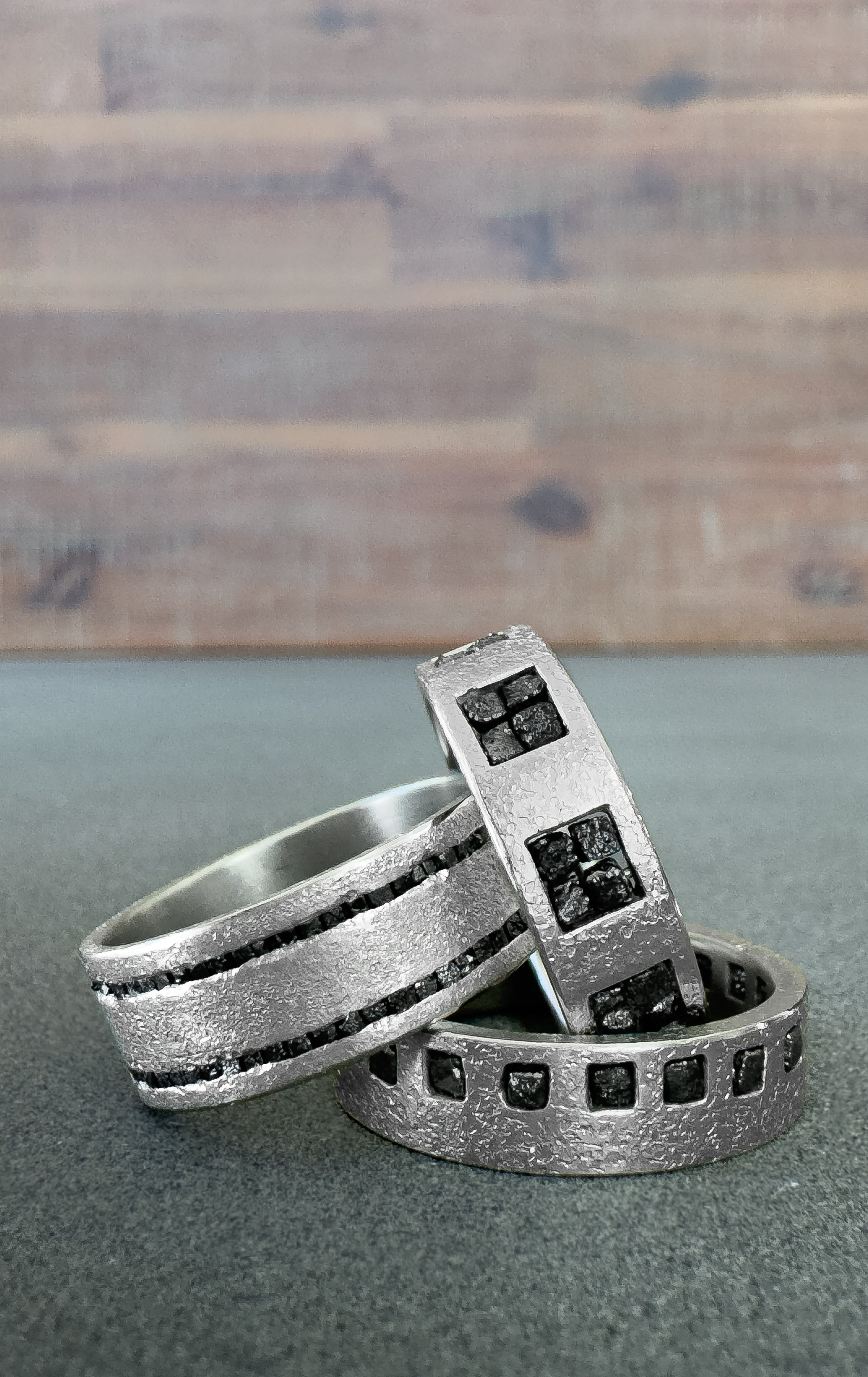 MarcyI just got my custom-made ring from Hozoni Designs and I am so thrilled!! I worked with Daniele and Steve to create a wedding band, using diamonds from my mother-in-law's ring. They made a perfect ring that incorporates the rustic elements, which attracted me to their unique jewelry, with the tradition of family heirloom diamonds. Having a piece made especially for me makes my wedding band so special and sentimental. I looked far and wide for a style of ring that suited my taste, and I am so happy that I found Hozoni Designs!!!
