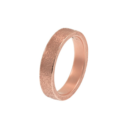 This ring is hand forged from solid 14K gold and has a textured surface which gives it a rustic look. The inside of the ring has a smooth surface with rounded edges for a comfortable fit. This band is offered in four colors and all our gold is sourced from recycled gold suppliers.
